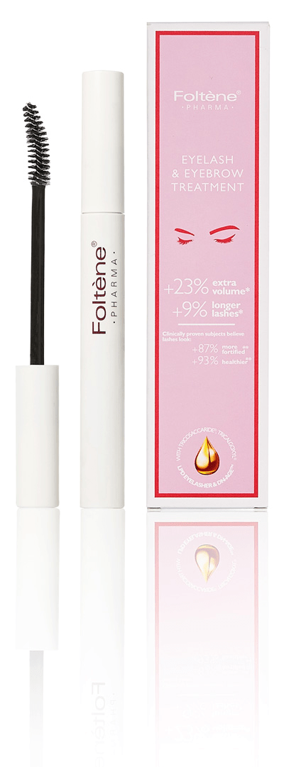 The new Foltène® PHARMA eyelash & eyebrow treatment is specially developed for thin and delicate eyelashes and eyebrows. Its carefully designed formula with Tricosaccaride®, Tricalgoxyl®, LPD Eyelasher and DN-Age™ conditions and protects eyelashes and eyebrows, while promoting their natural health.