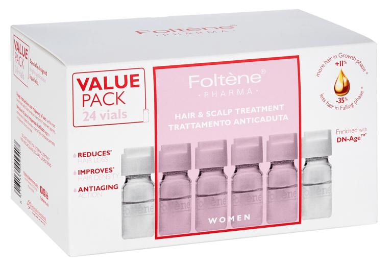 Tricalgoxyl®: Foltène® PHARMA exclusive active ingredient, is a mixture of polysaccharides extracted from different types of brown algae (Fucus Vesiculosus and Ascophyllum Nodosum). Thanks to its revitalizing and strengthening action, it promotes thick, healthy and strong hair. Moreover, it normalizes the life cycle of hair, thus reducing hair loss, encouraging natural hair growth and restoring the natural balance of the scalp.